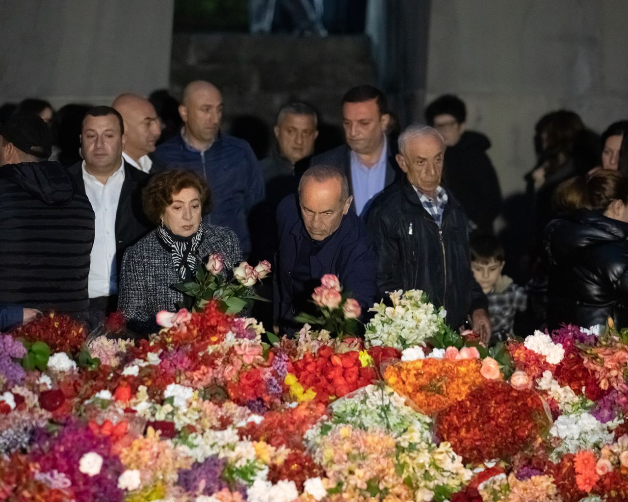 Armenia’s second President and leader of the “Armenia” Alliance, Robert Kocharyan, together with his wife Bella Kocharyan and son Levon Kocharyan, visited the Tsitsernakaberd Memorial today to pay tribute to the memory of the innocent victims of the Armenian Genocide.